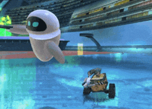 - ЕВА (EVE) — современный высокотехнологичный поисковый робот, посланный на Землю, чтобы найти признаки жизни. ЕВА сильна, решительна, но при этом обладает чувствительной и заботливой натурой, которая раскрывается в общении с ВАЛЛ-И.